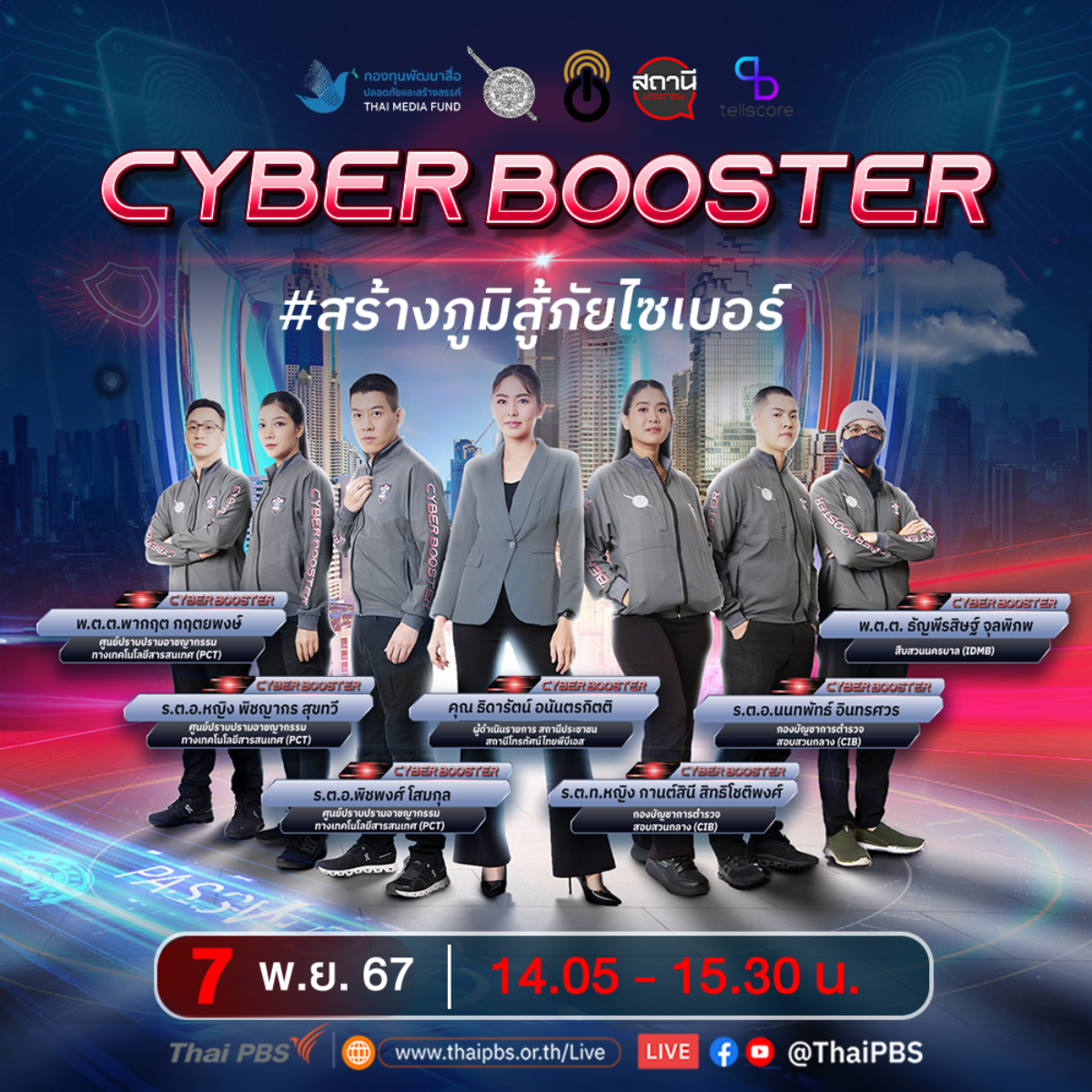 พบกับการรวมตัวกันของ 7 ฮีโร่ทีม Cyber Boosterที่จะมาสร้างความปลอดภัยเสริมภูมิคุ้มกัน ช่วยเหลือประชาชนให้รู้ทันภัยไซเบอร์จากมิจฉาชีพออนไลน์